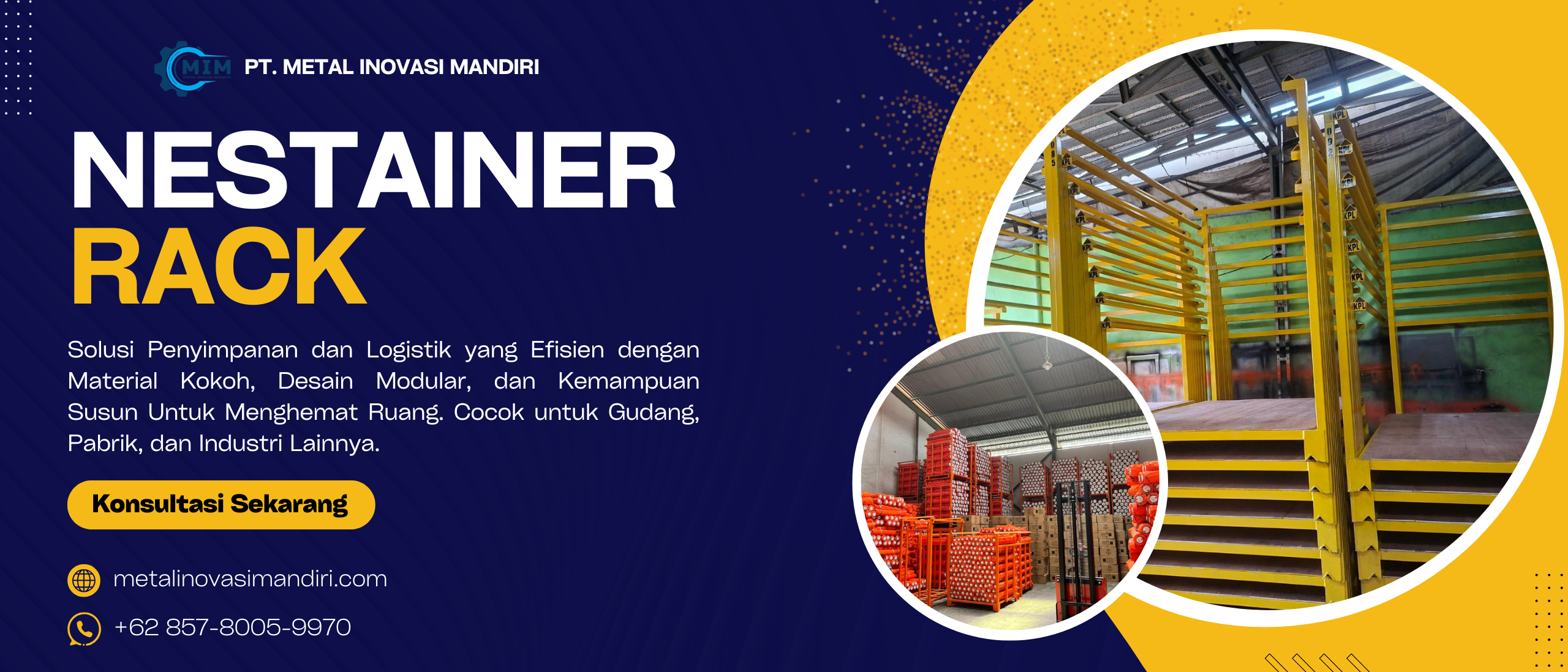 PT Metal Inovasi Mandiri adalah perusahaan yang bergerak di bidang pembuatan produk logam berkualitas tinggi dengan spesialisasi pada Nestainer Rack, Stacking Rack, dan Pallet Susun untuk kebutuhan gudang dan industri.